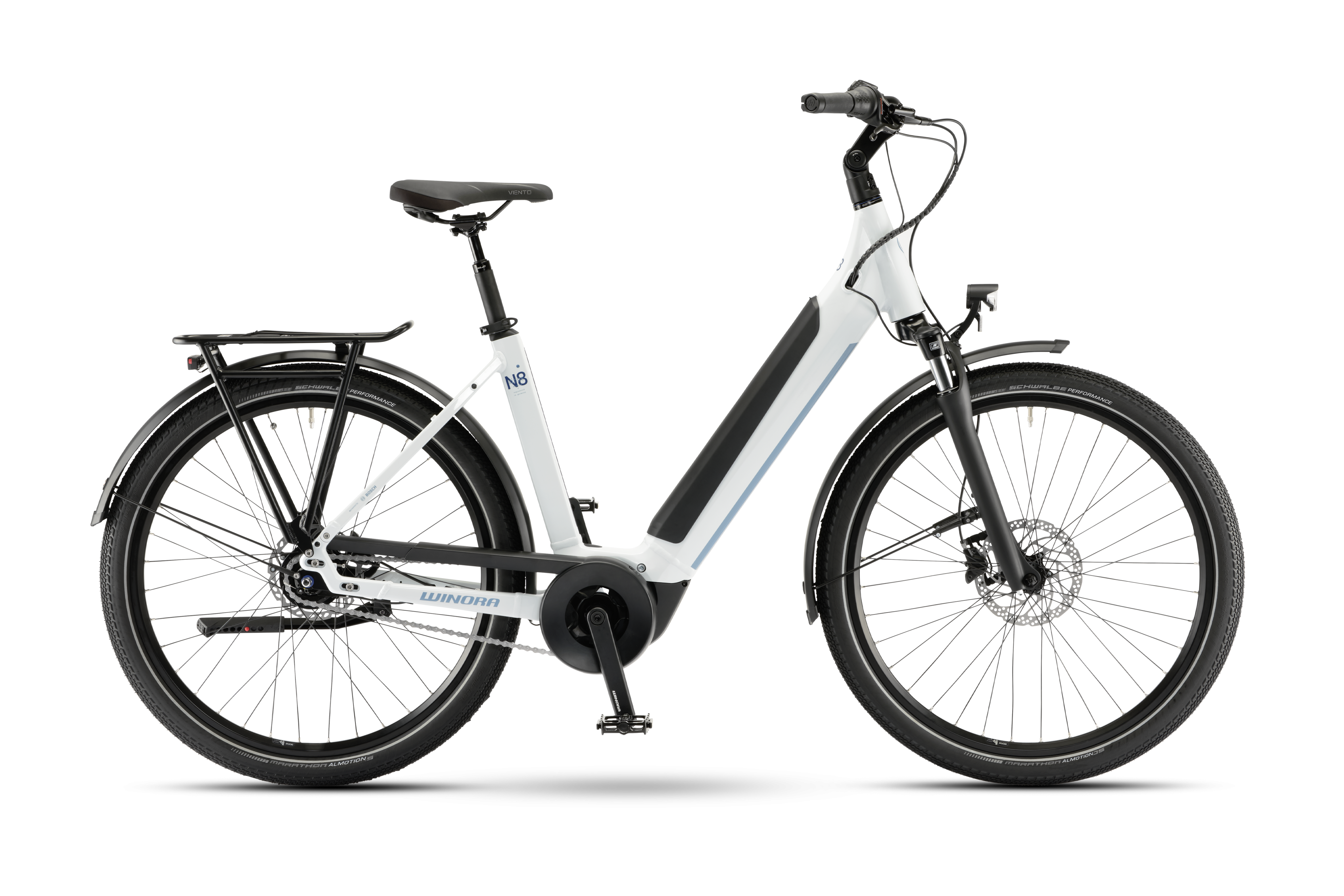 So werden die alltäglichen Touren zum täglichen light. Mit dem Winora Sinus N8f mit Freilauf bist du jederzeit bestens gerüstet – egal ob morgendlicher Arbeitsweg oder Wochenendausfahrt über Wald- und Wiesenwege. Der vielseitige Bosch Performance Line Smart System Motor unterstützt dich kraftvoll ab der ersten Kurbelumdrehung. Mit der leichtläufigen Nexus Nabenschaltung mit 8 Gängen kannst du stets geschmeidig in den nächsten Gang wechseln. Und die hydraulischen Scheibenbremsen bringen dich zuverlässig zum Stehen. Ein Plus an Sicherheit bietet dir der Einstieg, mit dem du schnell auf- und absteigen kannst. Praktisch ist der Gepäckträger, und mit dem ins Raddesign integrierten Modular Rail System kannst du den Stauraum zusätzlich erweitern. Die perfekten Voraussetzungen also, um deine Alltagsfahrten zum täglichen light zu machen.
